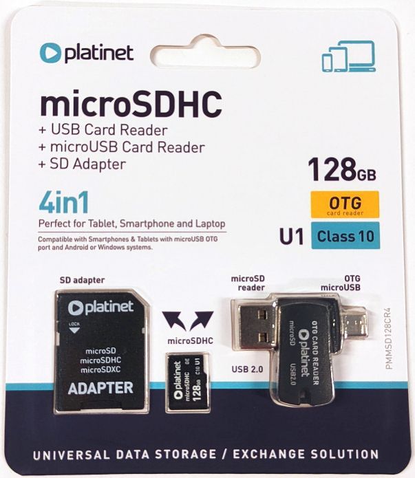 Platinet microSD-XC card 128GB *Class10* 4in1 *OTG* !info (45650)